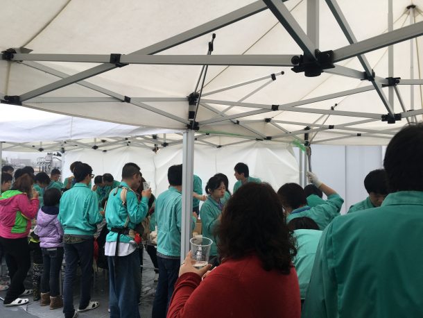 当日は、予報通り朝から雨でしたが、BBQ会場は肉と魚介、鍋、そして社員の方々の想いが一か所に集まり、最初からすごい熱気ででした。