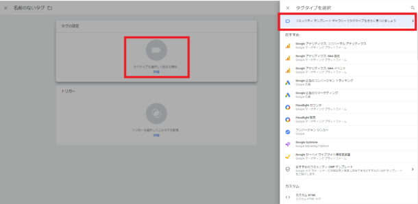 Yahoo!サイトジェネラルタグと同様に、タグの設定をクリックし、タグタイプを選択します。