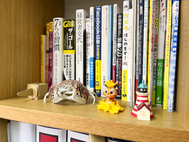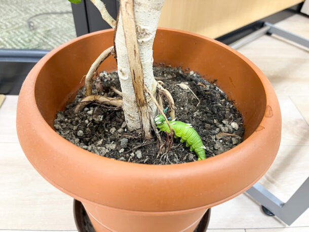 入り口だけに置いてあるのかなと思って探してみると本棚や靴箱の上、観葉植物の鉢植えの中にもいました(いつの間に…)