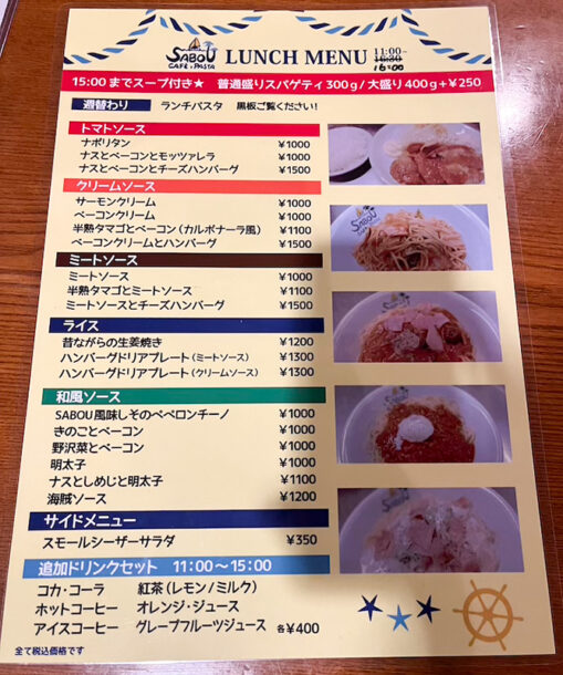 ランチメニューはパスタやライス、サラダもあって種類が豊富!目移りしちゃいます!