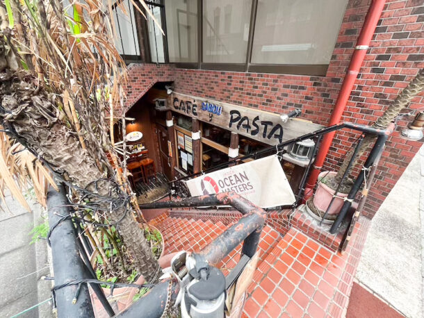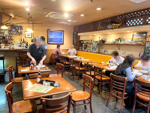 階段を降りると、海を感じられるおしゃれな雰囲気!ネットで調べると海を感じる店内の小物や飾りはオーナーさんの趣味なんだとか…