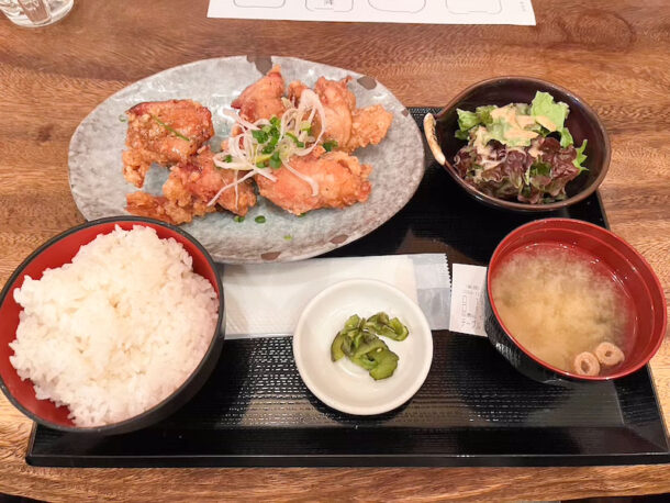 注文をしてすぐに唐揚げ定食が到着!揚げ物のはずなのに提供が早い!