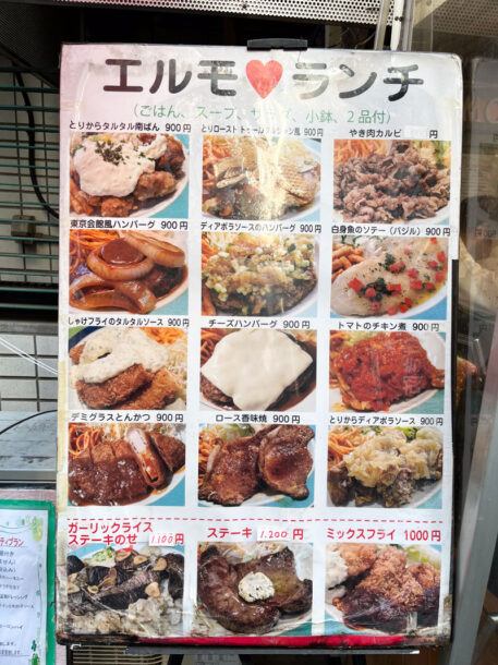 入口側には大きな看板でランチメニューの一覧がが出ているので初めての人でも安心!